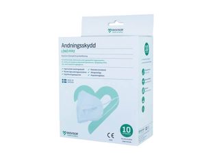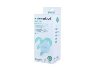 Svensktillverkat andningsskydd FFP2 med elastiska huvudband.