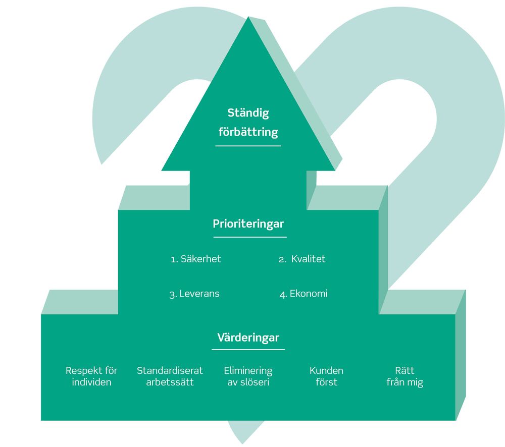 Våra värderingar och prioriteringar är med oss i den dagliga verksamheten. Målet är att alla medarbetare ska ha det i ryggmärgen.